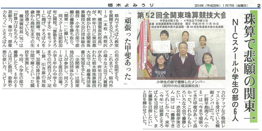 | [読上算競技入賞者] | 3部門優勝 2部門準優勝 |